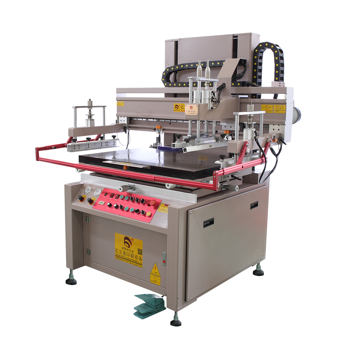 1) 立式结构,网版垂直上下升降,印刷头左右动作。